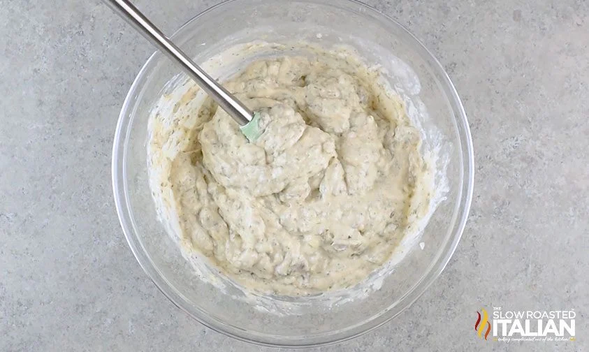 - In a medium bowl, add cream of mushroom soup, dried parsley, dried dill, garlic powder, onion powder, dried basil, and black pepper. Use a hand mixer on LOW speed (or a spatula and some elbow grease) to combine the ingredients, until only small clumps of cream cheese remain, about 2-4 minutes.