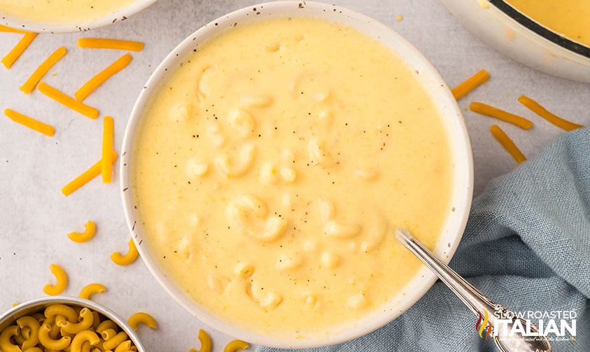 After testing dozens of mac and cheese variations over the years, I discovered the secret to silky mac soup is to never boil the cheese. Always melt it off the heat.
