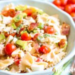Cook bacon and prepare all other ingredients. If desired, reserve a few of each add-in ingredient to place on top of pasta salad for garnish.