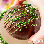 Let the hot chocolate bombs set for a few minutes then top with a drizzle of chocolate and sprinkles if desired.